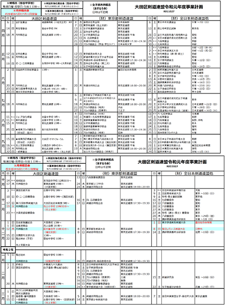 ※女性剣道あすなろ会⇒毎月1回、日時は不定期下の画像をクリックしてください。大田区剣道連盟と東京都剣道連盟および全日本剣道連盟の事業計画が並列表記されたPDFファイル(2ページ)が表示されます